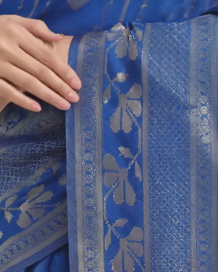 Divine Blue Silver Zari Banarasi Saree