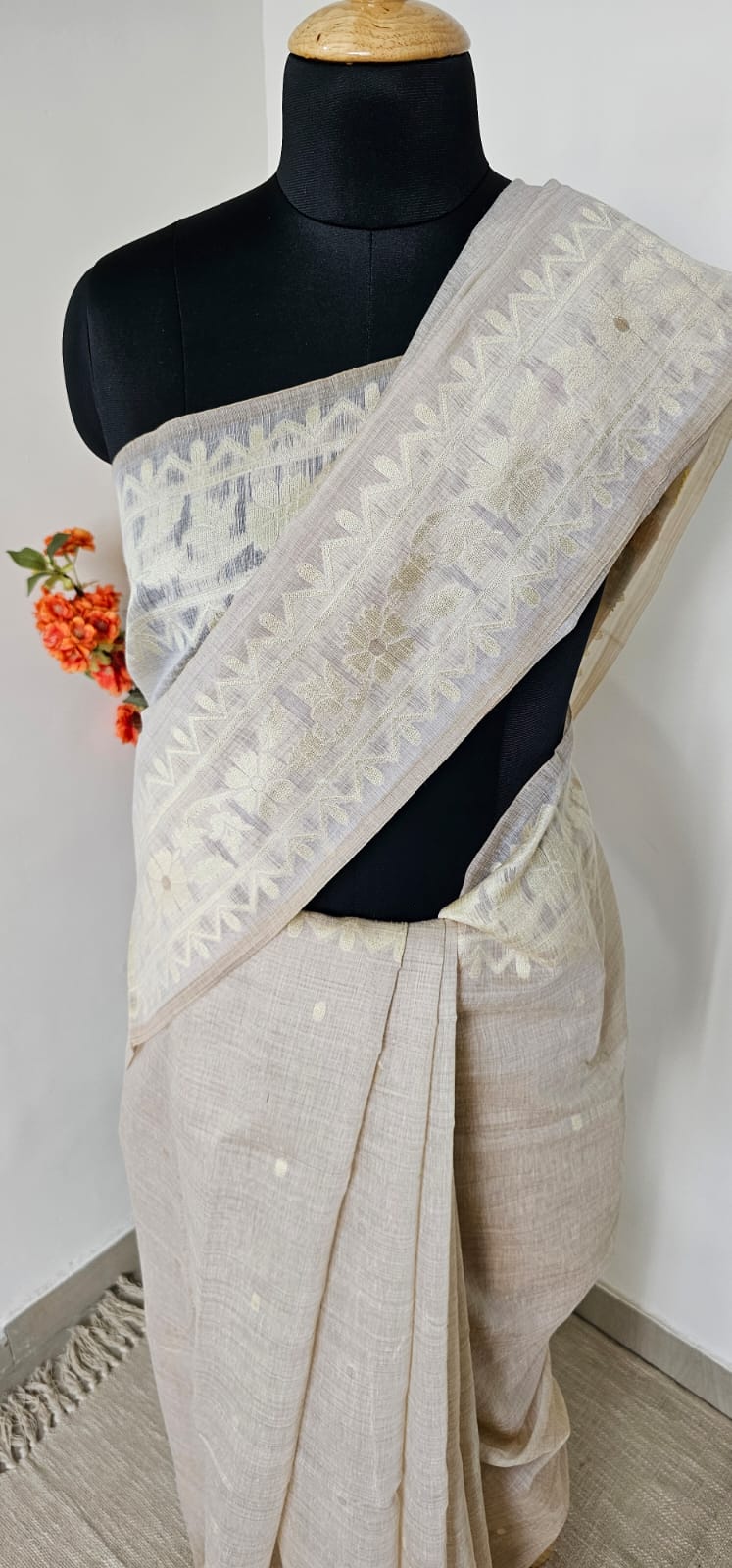 Wrap yourself in blooming serenity with this effortlessly graceful drape from Bhakti Raas.